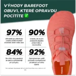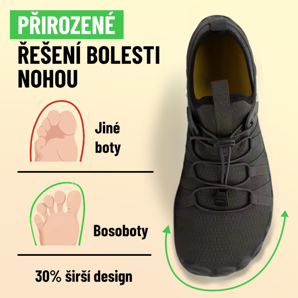 Široký nárt a větší prostor pro prsty činí chůzi mnohem komfortnější a přirozenější – vynikající obuv.