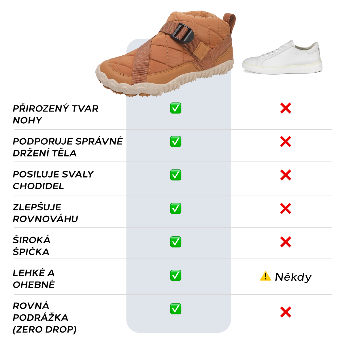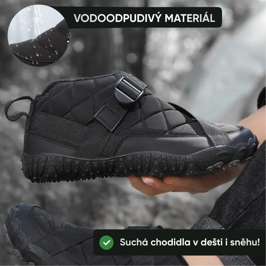 Tato obuv se širším nártem a větším prostorem pro prsty poskytuje mnohem pohodlnější a přirozenější chůzi – perfektní volba.