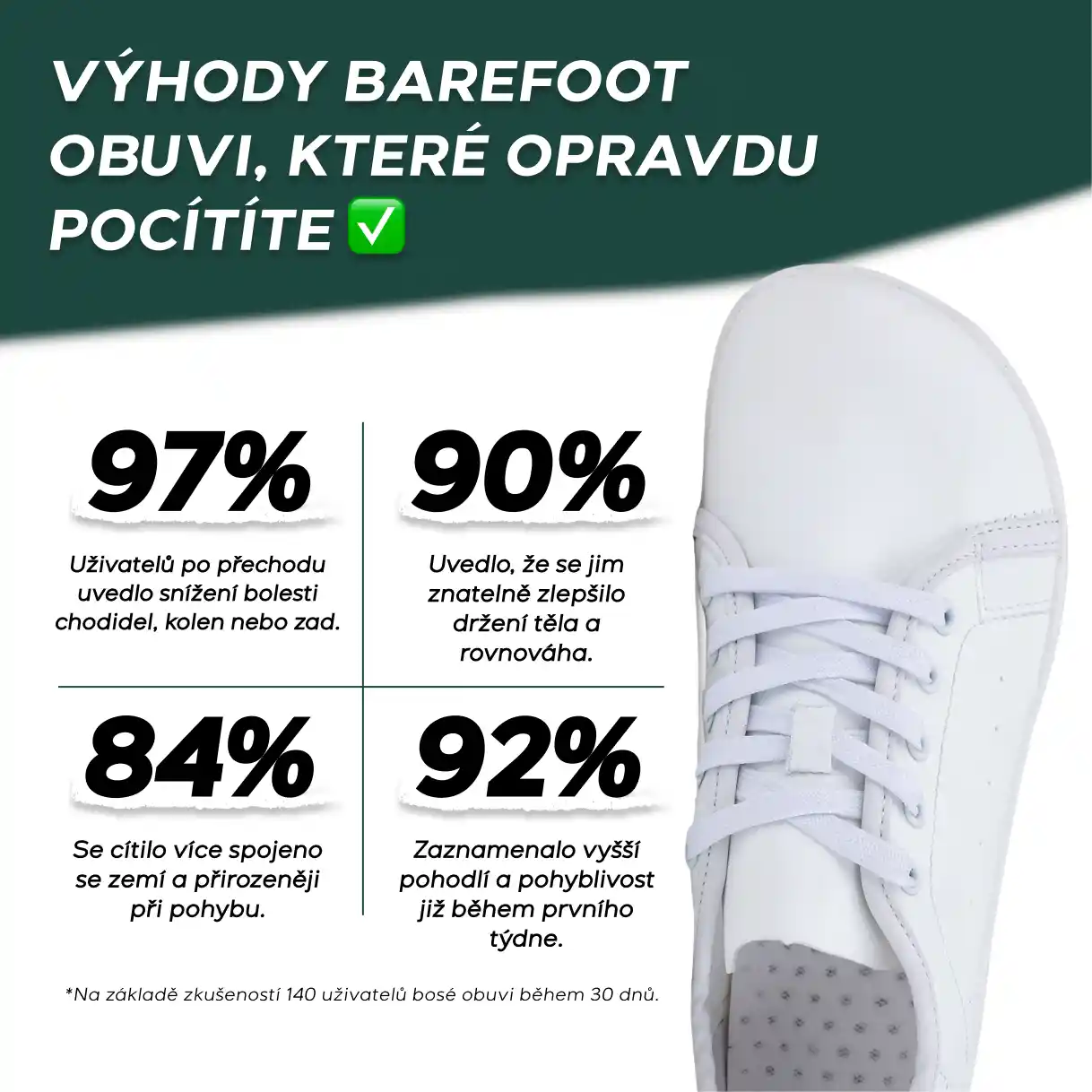 Tato obuv se širším nártem a větším prostorem pro prsty poskytuje mnohem pohodlnější a přirozenější chůzi – perfektní volba.
