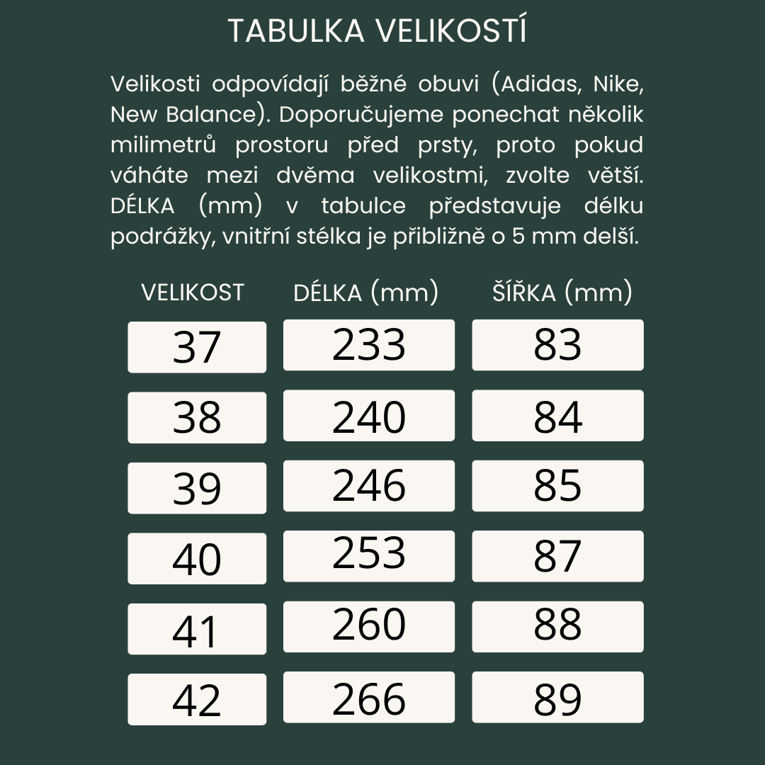 Široká přední část boty poskytuje prstům dostatek prostoru pro jejich přirozenou polohu.