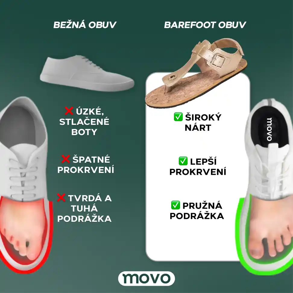 Když si vyberete barefoot obuv MOVO, volíte pohodlí, zdravá chodidla a přirozený zážitek z chůze. Tato jedinečná obuv poskytuje pocit chůze naboso a zároveň poskytuje potřebnou ochranu a oporu.