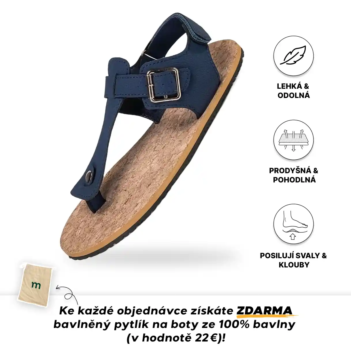 Anatomicky tvarovaná korková podrážka se postupně přizpůsobí vašemu chodidlu a poskytuje přirozenou oporu a stabilitu. Tenká, flexibilní barefoot podrážka bez zvýšené paty umožňuje dobrý kontakt se zemí a uvolněnou, přirozenou chůzi.